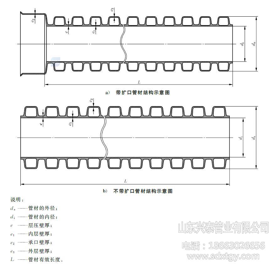 產(chǎn)品名稱:HDPE雙壁波紋管,聚乙烯雙壁波紋管 材料材質(zhì):PE/聚乙烯 執(zhí)行標(biāo)準(zhǔn):GB/T 19472.1 規(guī)格型號:DN/ID160-500mm(內(nèi)徑系列) 環(huán)剛度等級:SN4,SN8 外觀顏色:外觀內(nèi)壁均為黑色 產(chǎn)品長度:6米/支 連接方式:彈性密封圈 生產(chǎn)廠家:山東興泰管業(yè)有限公司 聯(lián)系電話:186 6302 6656 (高經(jīng)理) 適用溫度:長期使用溫度45℃以下的埋地排水、排污和通訊護(hù)套管用管材 產(chǎn)品介紹: HDPE雙壁波紋管,簡稱PE波紋管,80年代初在德國首先研制成功,是一種以聚乙烯PE為原材料,經(jīng)過擠出和特殊的成型工藝加工而成,內(nèi)壁光滑,外壁為封閉波紋型的一種新型輕質(zhì)管材,因采用了特殊的中空環(huán)形結(jié)構(gòu),具有優(yōu)異的環(huán)剛度和良好的強(qiáng)度與韌性。具有重量輕、耐高壓、韌性好、施工快、壽命長、摩擦系數(shù)小、連接方便可靠等特點。其優(yōu)異的管壁結(jié)構(gòu)設(shè)計,與其它結(jié)構(gòu)的管材相比,成本大大降低。雙壁波紋管已成為管道領(lǐng)域“以塑代鋼”的首選管材,它克服了混凝土管,鑄鐵管等安裝難度大、易銹蝕、水流阻力大、滋生細(xì)菌、壽命短的缺點。 PE雙壁波紋管是為了在節(jié)省原材料而不致使管材的環(huán)剛度下降的前提下,對管材截面進(jìn)行優(yōu)化設(shè)計的一種內(nèi)壁光滑平整、外壁為梯形或弧形波紋狀、內(nèi)外壁波紋間為中空、采用擠出成型工藝制成的管材。因為其主要原材料為聚乙烯(PE),故簡稱為PE雙壁波紋管。 PE雙壁波紋管內(nèi)徑系列管材尺寸(單位:mm) 公稱內(nèi)徑 DN/ID 最小平均內(nèi)徑 dim,min 最小層壓壁厚 emin 最小內(nèi)層壁厚 e1,min 最小外層壁厚 e3,min 最小結(jié)合長度 Amin 200 195 1.5 1.1 0.9 54 300 294 2.0 1.7 1.0 64 400 392 2.5 2.3 1.8 85 500 490 3.0 3.0 2.1 96 PE雙壁波紋管的優(yōu)點 : 1、 產(chǎn)品結(jié)構(gòu)獨特,抗壓能力強(qiáng),具有足夠安全可靠的環(huán)剛度; 2、 節(jié)約原材料,用同樣的原材料做同一外徑的管材時,波紋管比實壁管節(jié)省30%以上的原材料; 3、 重量輕,比重小于鑄鐵管和水泥管的50%; 4、 內(nèi)壁表面光滑,不易產(chǎn)生沉積,摩擦系數(shù)小; 5、 PE雙壁波紋管采用柔性密封圈連接,密封性能好,耐腐蝕,不結(jié)垢; 6、 具有良好的撓曲心梗,可適應(yīng)土壤的不均勻沉降; 7、 連接便捷、施工進(jìn)度快,與傳統(tǒng)水泥管相比,采用PE波紋管可以提高3倍以上安裝進(jìn)度,明顯降低施工費用,縮短施工周期; 8、 生產(chǎn)成本低,埋地使用可達(dá)50年以上,綜合經(jīng)濟(jì)性能優(yōu)越。 PE雙壁波紋管的物理力學(xué)性能 項目 要求 環(huán)剛度/(kN/m2) SN4 SN8 ≥4 ≥8 沖擊性能(TIR)/ % ≤10 環(huán)柔性 管材無破裂,兩壁無脫開,內(nèi)壁無反向彎曲 烘箱試驗 無分層,無開裂 密度/(kg/m3) ≤1180 氧化誘導(dǎo)時間(200℃)/min ≥20 蠕變比率 ≤4 PE雙壁波紋管的應(yīng)用領(lǐng)域 : 1、 市政工程,用于建筑物的地下排水管、排污管、輸水管、通風(fēng)管等; 2、 公寓、住宅小區(qū)、農(nóng)村地下埋設(shè)排水排污; 3、 電器電信工程,作為電力電纜、通訊光纜、通訊信號電纜的保護(hù)管; 4、 工業(yè),由于聚乙烯材料具有優(yōu)良的耐酸、堿及耐腐蝕能力,結(jié)構(gòu)壁管可用于化工、醫(yī)藥、環(huán)保等行業(yè)的給水和排水管道; 5、 農(nóng)業(yè)、園林工程,用于農(nóng)田、果園、茶園以及林帶排灌,可節(jié)水70%,節(jié)約用電13.9%,也可用于農(nóng)村灌溉; 6、 道路工程,可用作鐵路、高速公路、高爾夫球場、足球場等的滲、排水管; 7、 礦場,用作礦井的通風(fēng)、送風(fēng)管、排水管。 PE雙壁波紋管的連接: HDPE雙壁波紋管管道接頭應(yīng)采用彈性密封橡膠圈連接的承插式接口,橡膠圈接口應(yīng)遵守下列規(guī)定: 1、接口前,應(yīng)先檢查橡膠圈是否配套完好,確認(rèn)橡膠圈安放位置及插口的插入深度。 2、接口時,先將承口的內(nèi)壁清理干凈,并在承口內(nèi)壁及插口橡膠圈上涂潤滑劑,然后將承插口端面的中心軸線對齊。 3、接口方法應(yīng)按下述程序進(jìn)行:DN400及其以下管道,先由一人用棉紗繩吊住被安裝管道的插口,另一人用長撬棒斜插入基礎(chǔ),并抵住該管端部中心位置的橫擋板,然后用力將該管緩緩插入待安裝HDPE雙壁波紋管管道的承口至預(yù)定位置;DN400以上管道可用兩臺手扳葫蘆將管節(jié)拉動就位。接口合攏時,管節(jié)兩側(cè)的手扳葫蘆應(yīng)同步拉動,使橡膠密封圈正確就位,不扭曲、不脫落。 PE雙壁波紋管貯存方法: HDPE雙壁波紋管應(yīng)貯存于常溫干燥庫中,不宜暴曬。 HDPE雙壁波紋管應(yīng)平放,堆碼高度不得超過4m。 HDPE雙壁波紋管不允許與有毒有害物質(zhì)混放,應(yīng)遠(yuǎn)離熱源,在存放處應(yīng)設(shè)置醒目的禁火標(biāo)志。 存放期自生產(chǎn)之日起,一般不得超過2年。